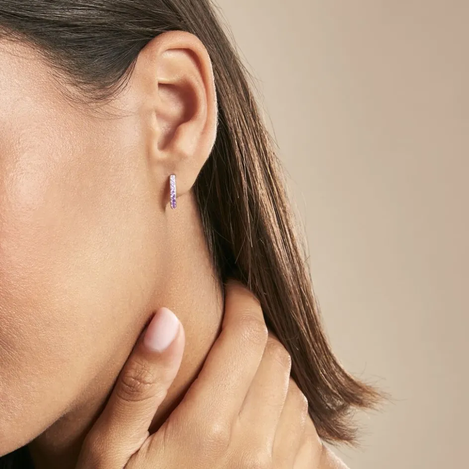 Créoles Argent Rose 925/1000 Oxydes De Zirconium Violets 7mm