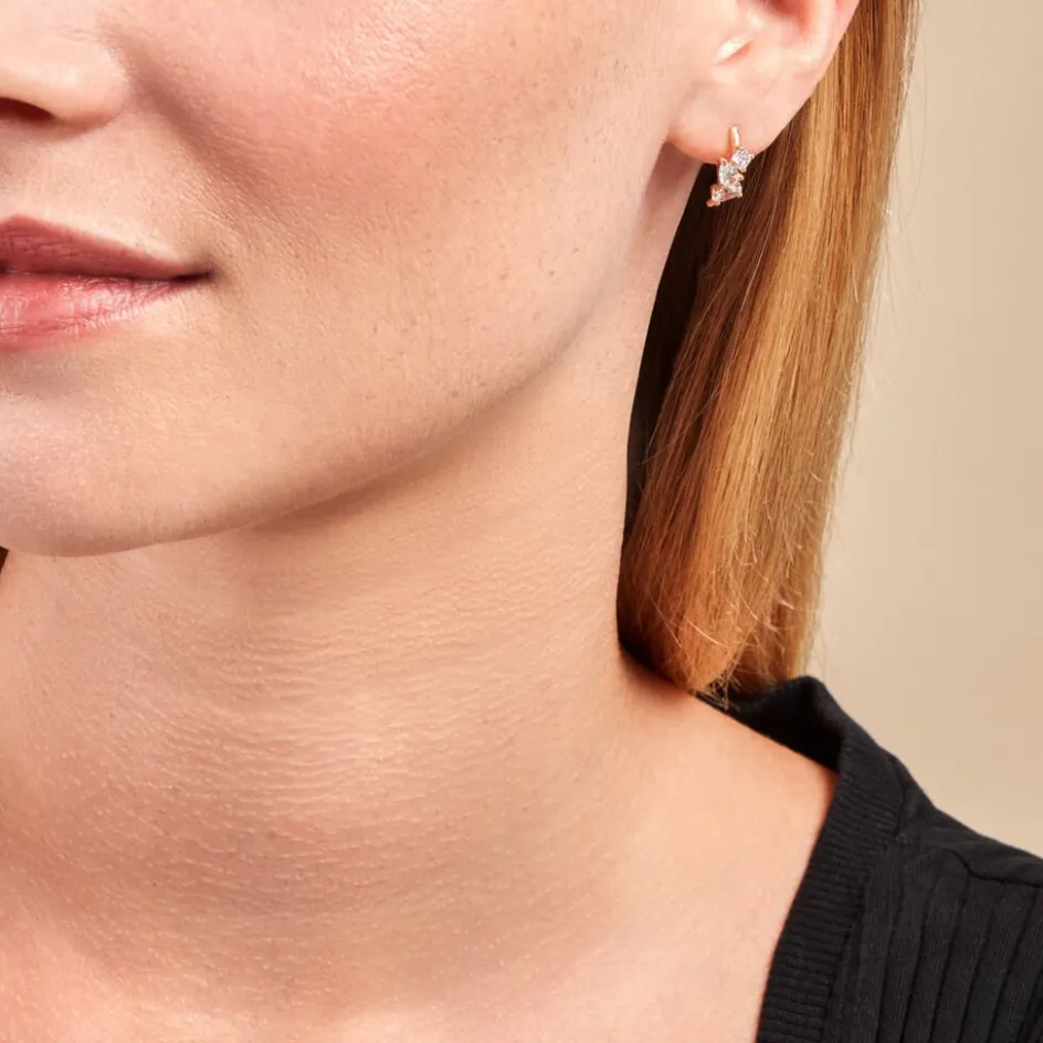 Demi Creoles Or Jaune 375/1000 Multipierres Oxyde De Zirconium Ovale Poire Coussin Serti Griffes
