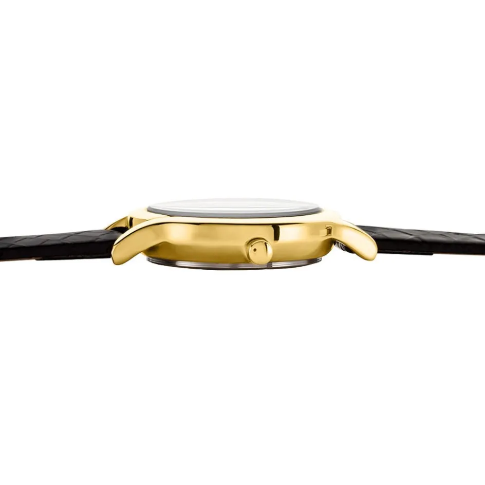 Montre O Watch Tiny Alliage Doré Ronde Quartz 26.5mm Fond Noir Bracelet Synthétique Noir P100851-ai