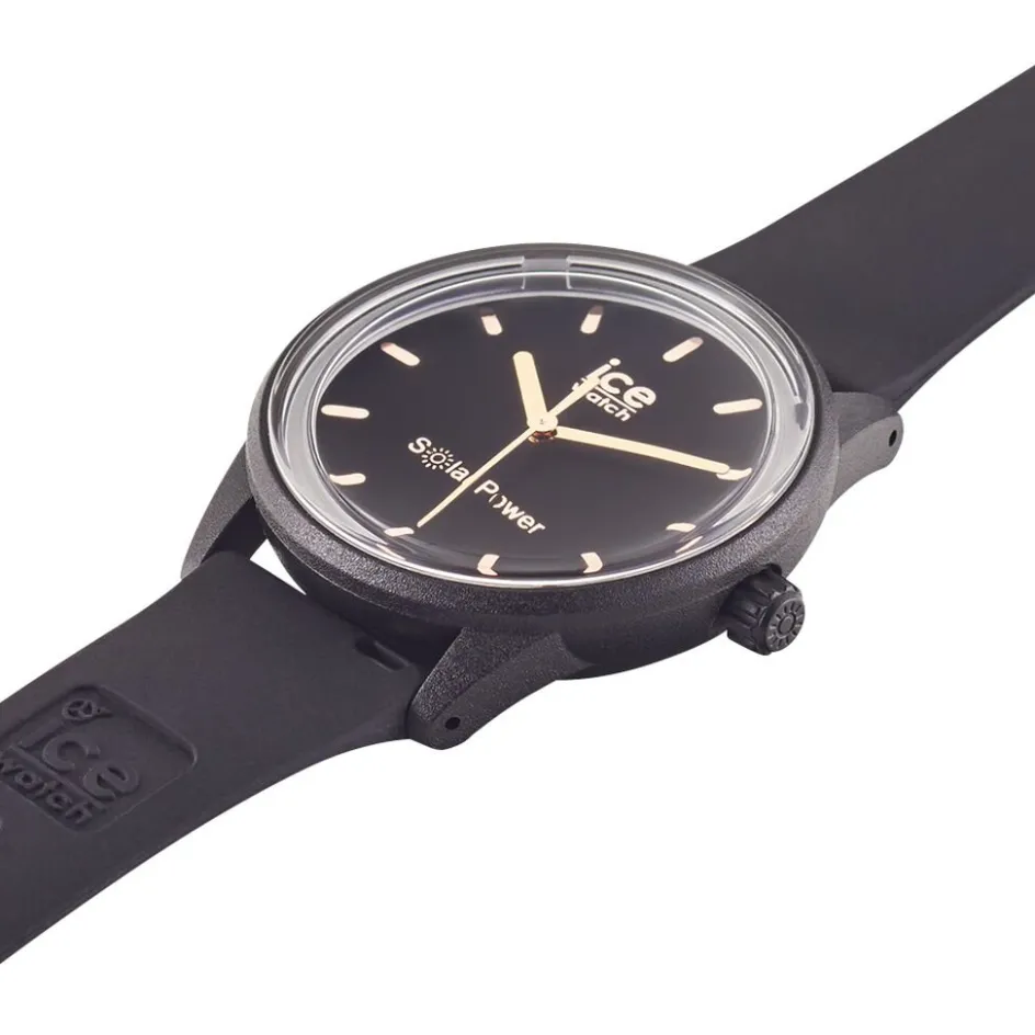 Montre Ice Watch Solar Power Plastique Noir Ronde Solaire 38mm Fond Noir Bracelet Silicone Noir 018476