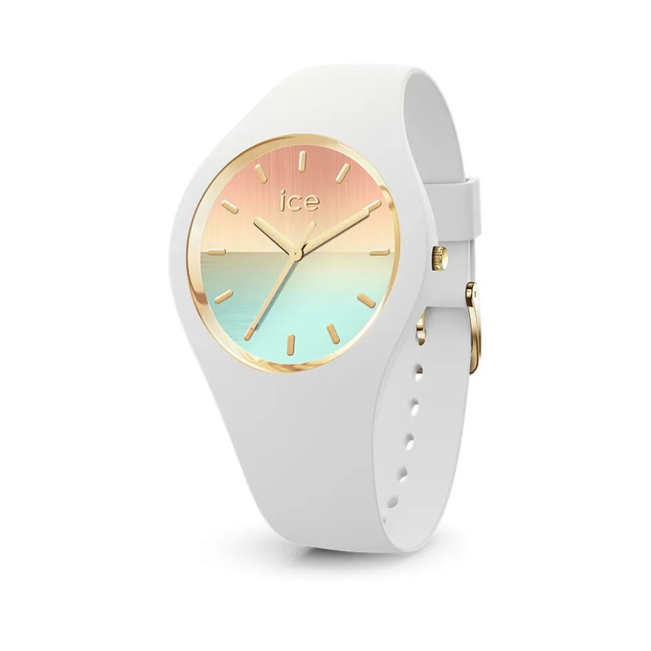 Montre Ice Watch Sunset Acier Blanc Ronde Quartz 40mm Fond Multicolore Bracelet Silicone Blanc 020637