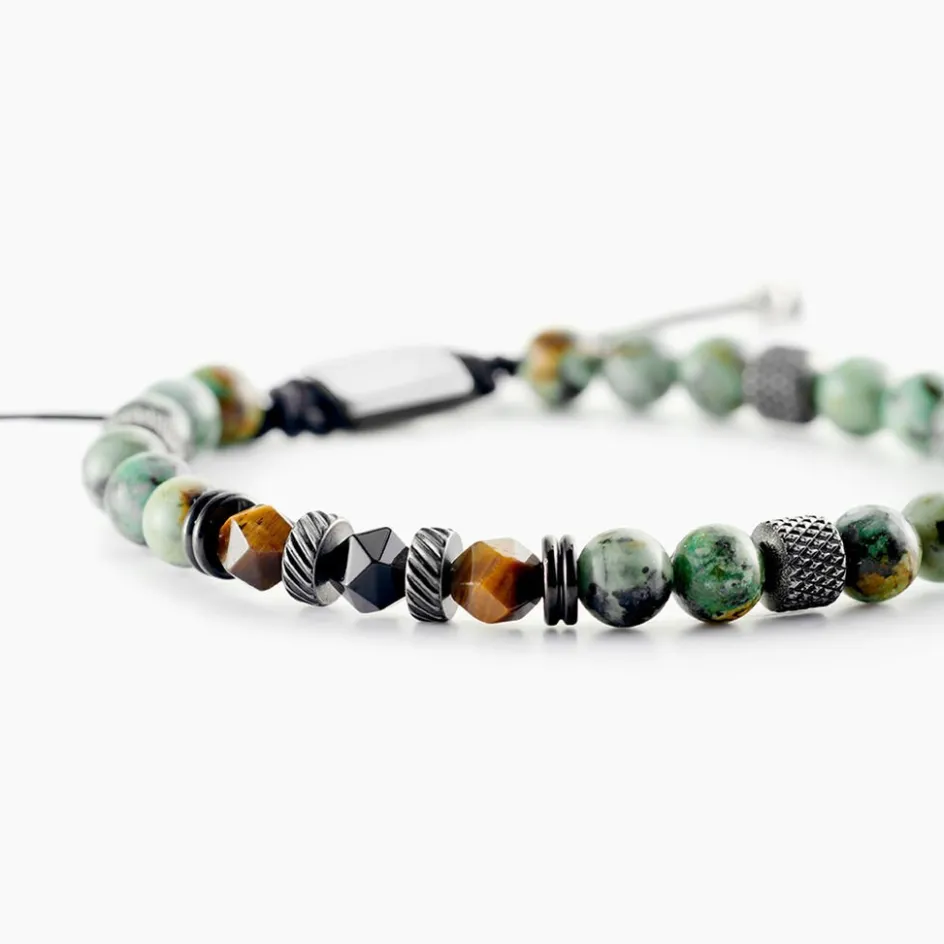 Bracelet Jourdan Archimedes Acier Inoxydable Oeil De Tigre Jaune Et Turquoise Vert 19cm+8cm Jh250107b