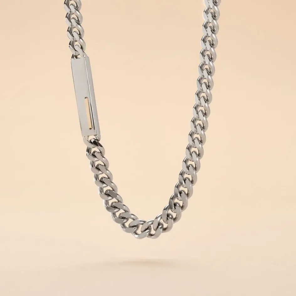 Collier Jourdan Olympe Acier Blanc Detail Or Jaune Maille Gourmette 55cm Jh150119n