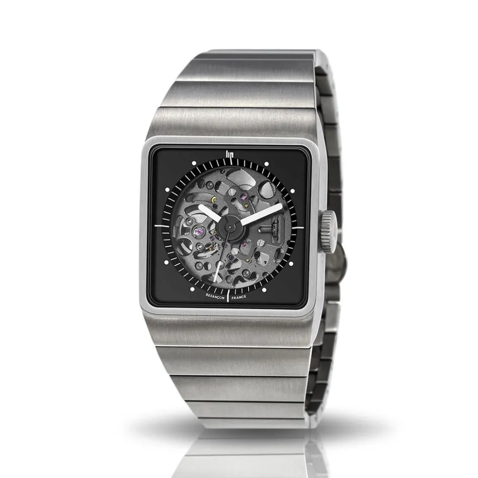 Montre Lip Big Titane Titane Gris Carré Automatique 35mm Fond Gris C艙ur Ouvert Bracelet Titane Gris 671656