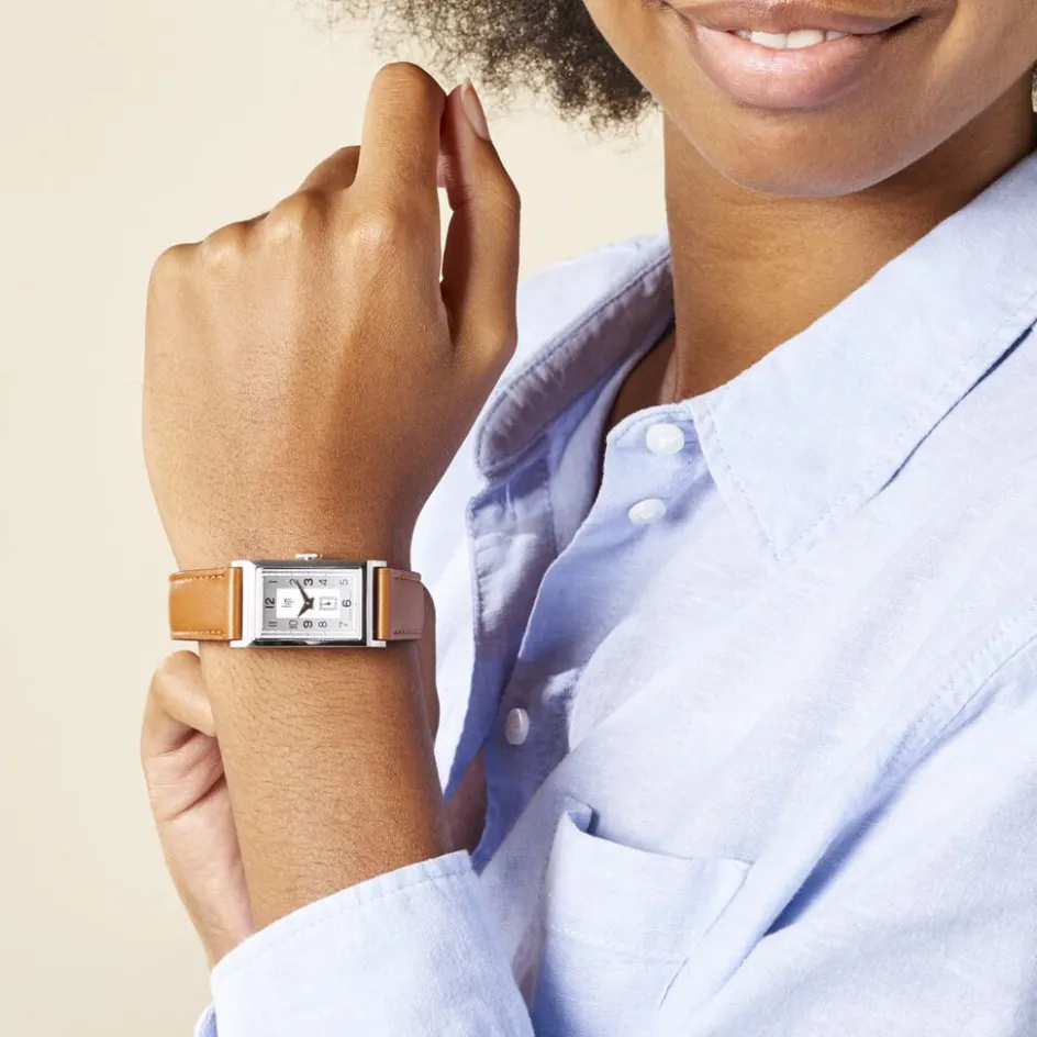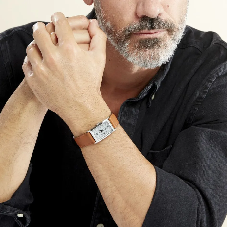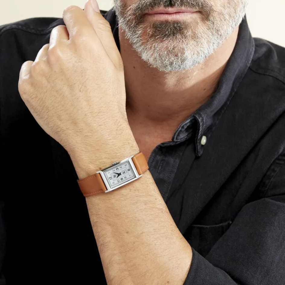 Montre Lip Churchill T18 Acier Argenté Rectangulaire Quartz 21.2×38.50mm Fond Argenté Bracelet Cuir Marron 671015