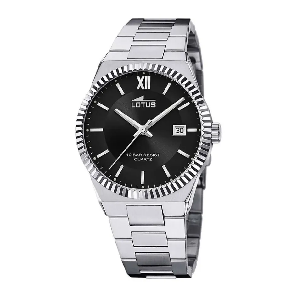 Montre Lotus Freedom Collection Acier Argente Ronde Quartz 40mm Fond Noir Bracelet Acier Argente 18835/3