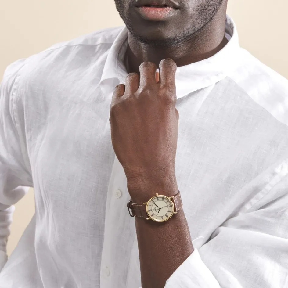Montre Herbelin Classique Plaque Or Ronde 34mm Fond Blanc Cuir Marron 12443p08ma