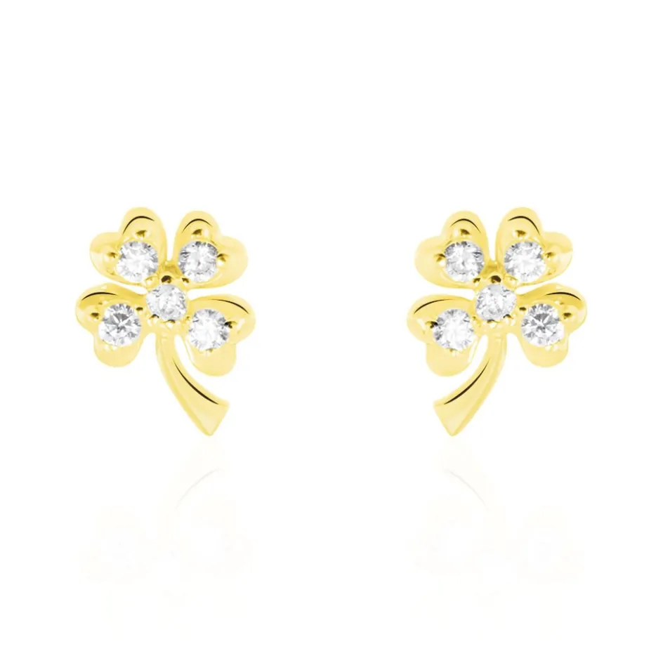 Boucles D’oreilles Or Jaune 375/1000 Trèfle Oxydes De Zirconium