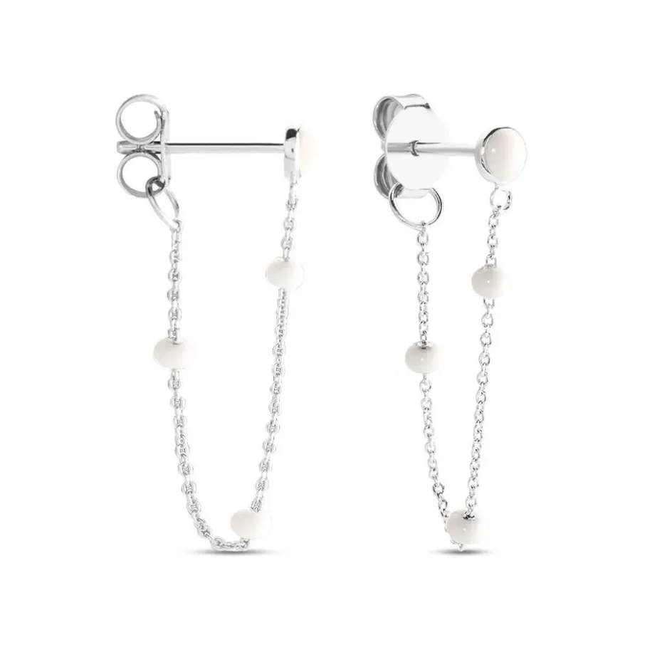 Boucles D’oreilles Pendantes Argent Blanc 925/1000 Email Blanc Maille Forçat 4.3cm