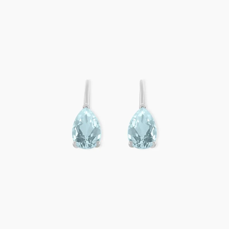 Boucles D’oreilles Or Blanc 375/1000 Topaze Forme Poire