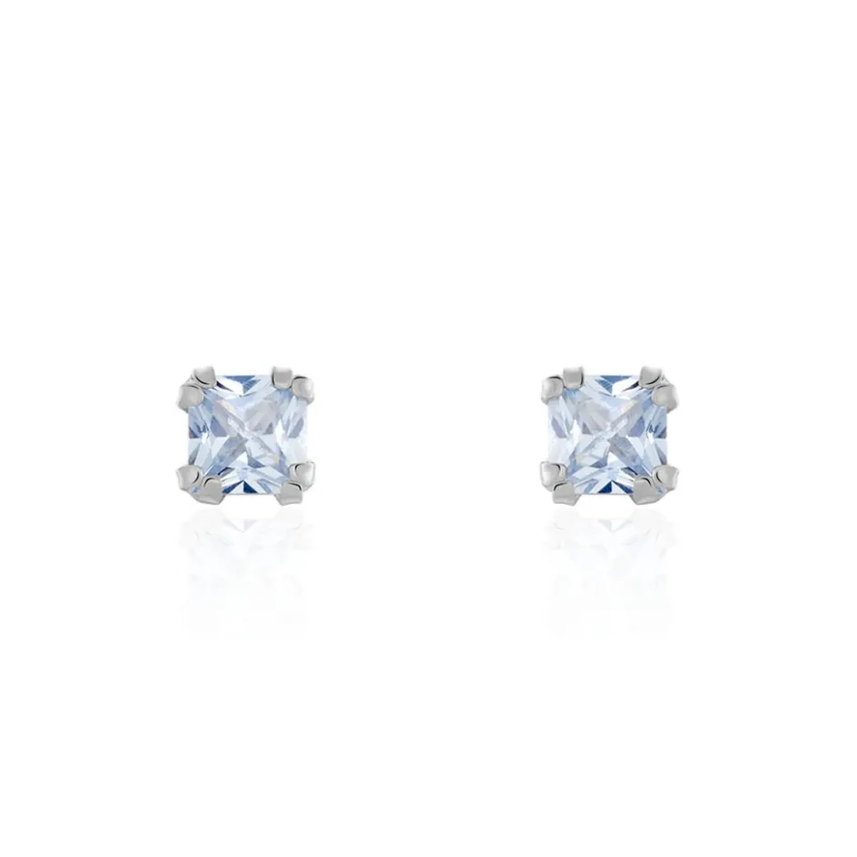 Boucles D’oreilles Or Blanc 375/1000 Puce Oxydes De Zirconium Carres Bleus 3mm