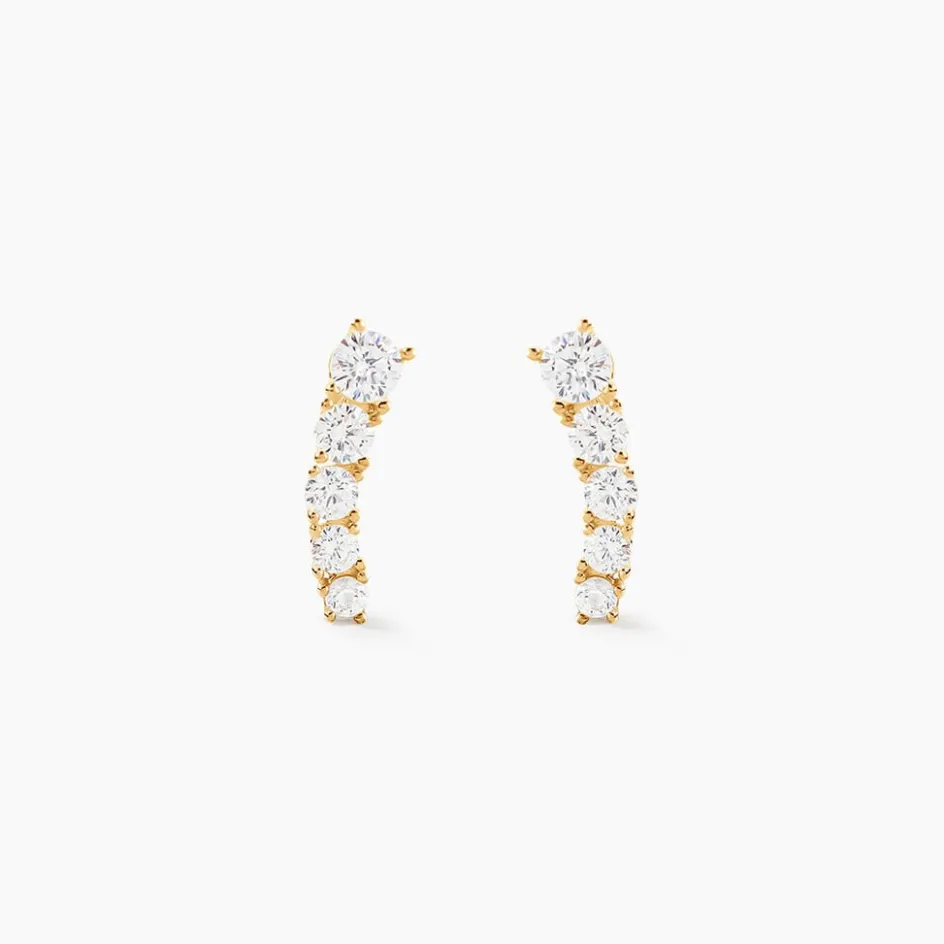 Boucles D’oreilles Puces Or Jaune 375/1000 Barrettes Oxydes De Zirconium