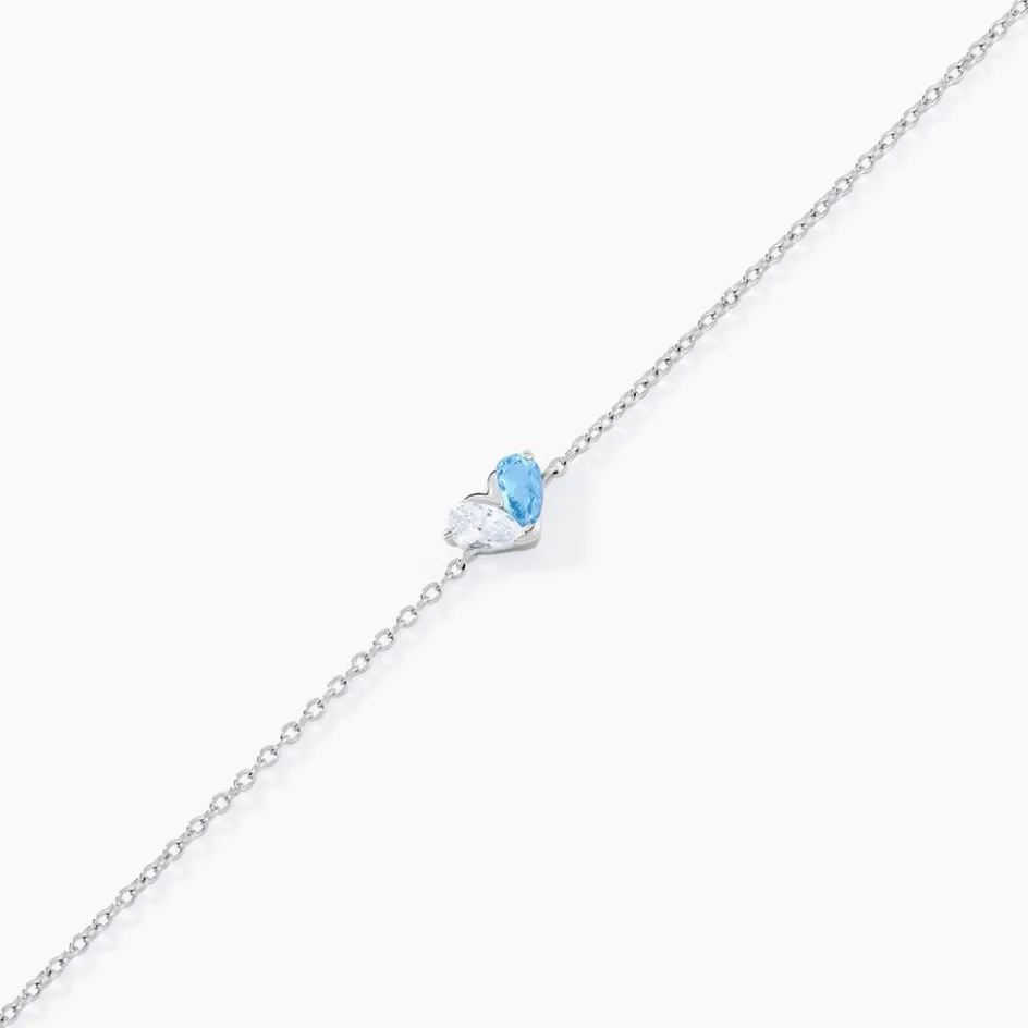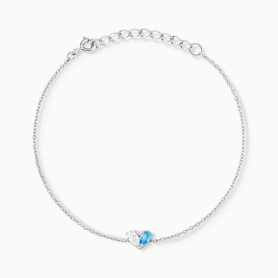 Bracelet Argent Blanc 925/1000 C艙ur Oxydes De Zirconium Bleu Et Blanc Maille Jaseron 16+3cm