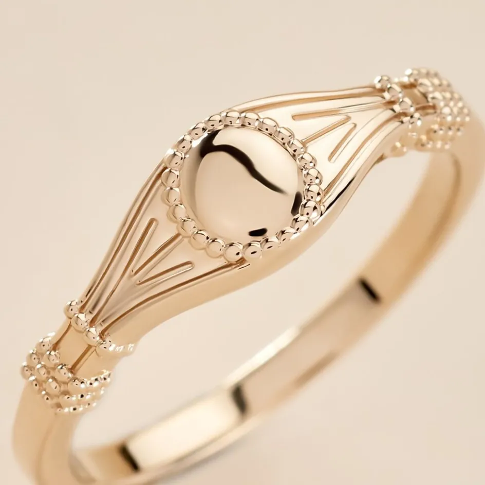 Chevalière Plaqué Or Jaune Plateau Ovale Corps De Bague Strié