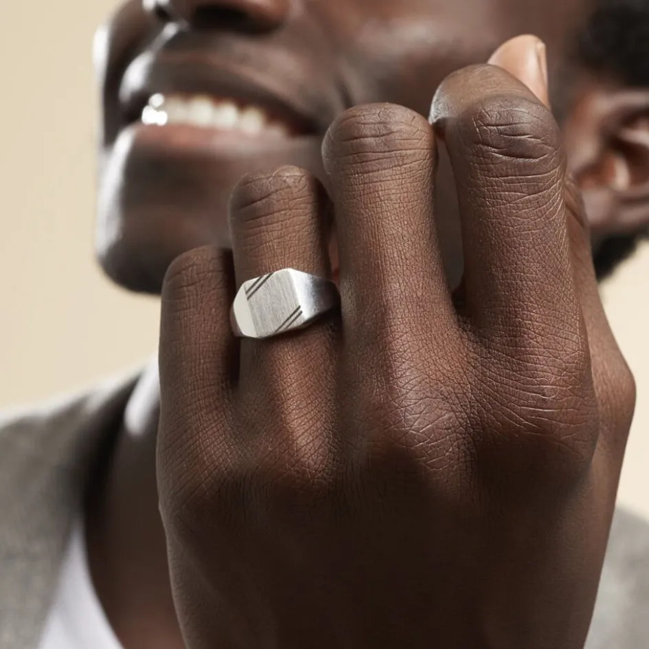 Chevaliere Argent Blanc 925/1000 Plateau Carre Cisele Pm