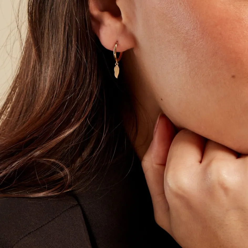 Creole Unitaire Or Jaune 375/1000 Fil Rond Pampille Plume Diametre 10mm