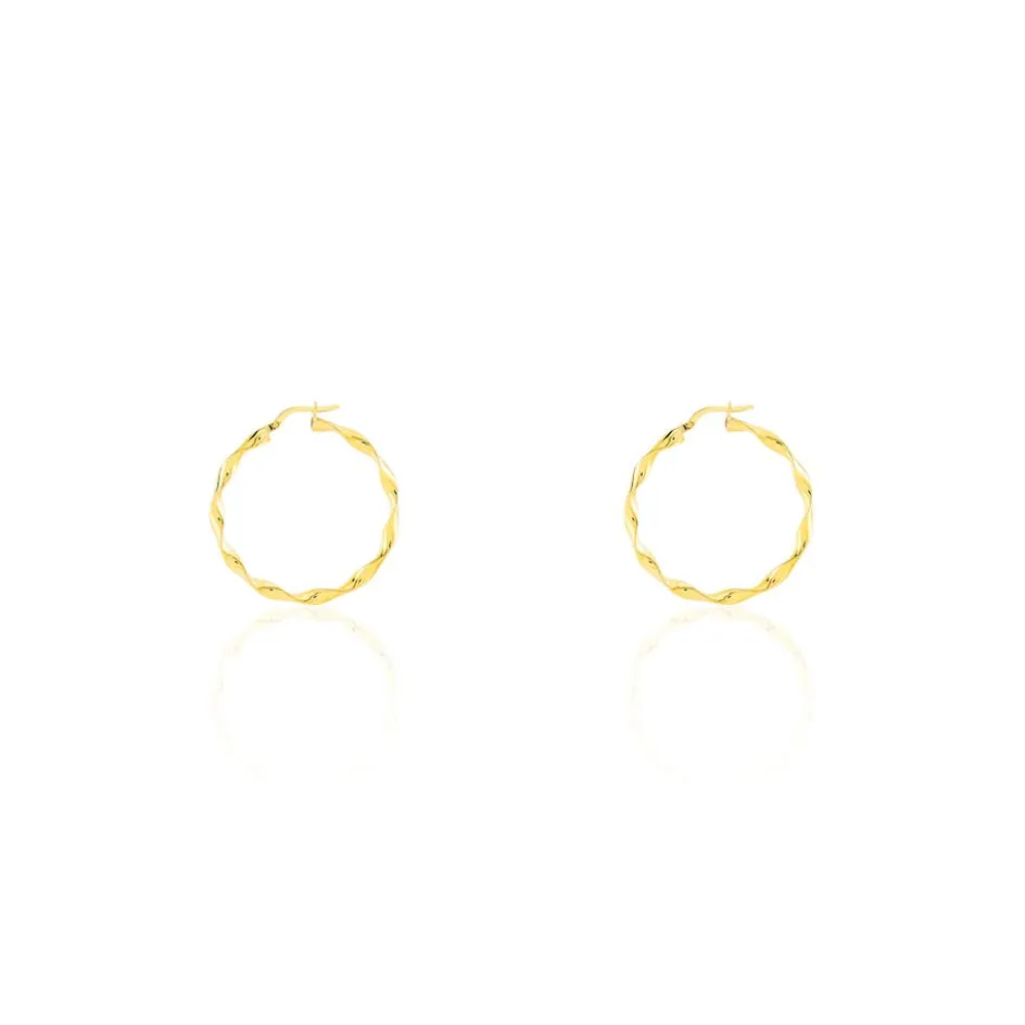 Créoles Or Jaune 375/1000 Ovales Fil Vrillé Largeur 1.5mm Diamètre 30mm