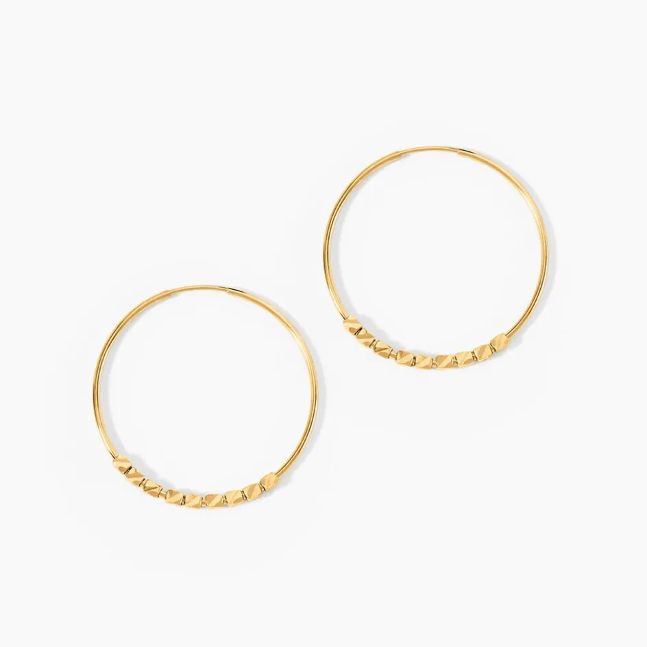 Créoles Or Jaune 375/1000 Flexibles Ornement Carré Largeur De Fil 1Mm Diametre 25Mm