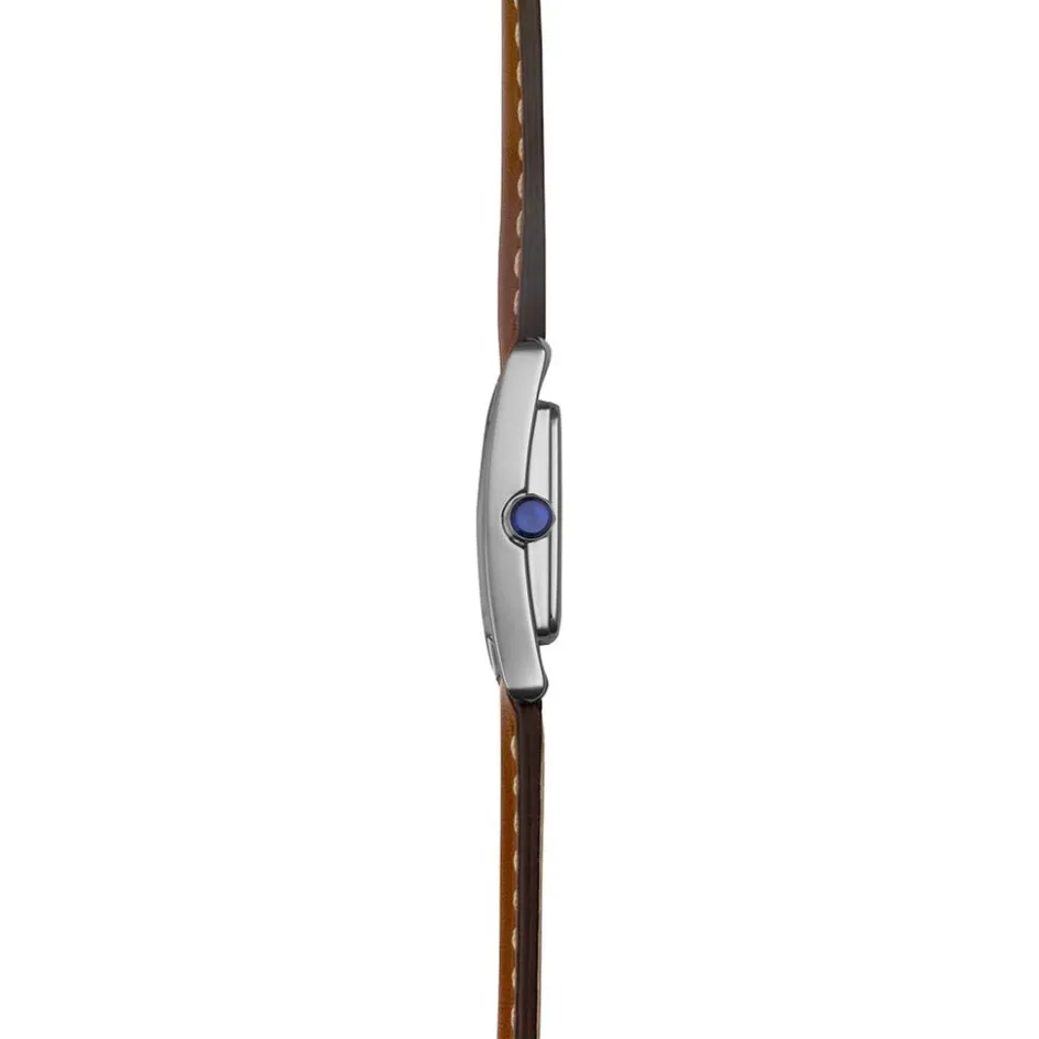 Montre Herbelin 5Eme Avenue Acier Inoxydable Argenté Quartz Rectangulaire 23,4X19Mm Fond Argenté Bracelet Double Tour Cuir De Veau Marron 17537Ap08Gdl