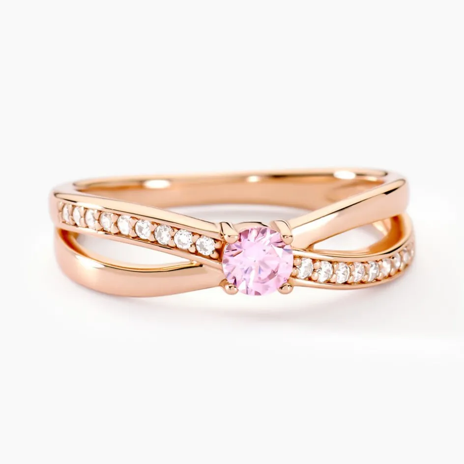 Bague Argent Rose 925/1000 Forme Vague Croisee 1 Pierre Rose Pavage Oxydes De Zirconium