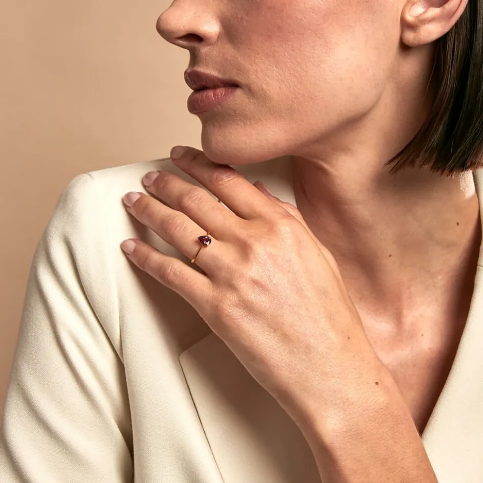 Bague Solitaire Or Jaune 375/1000 Poire Rhodolite 0.82 Cts Serti 3 Griffes