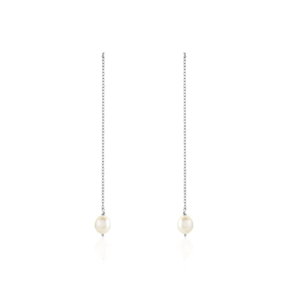 Boucles D’oreilles Pendantes Argent 925/1000 Perles De Culture Chaine Forçat