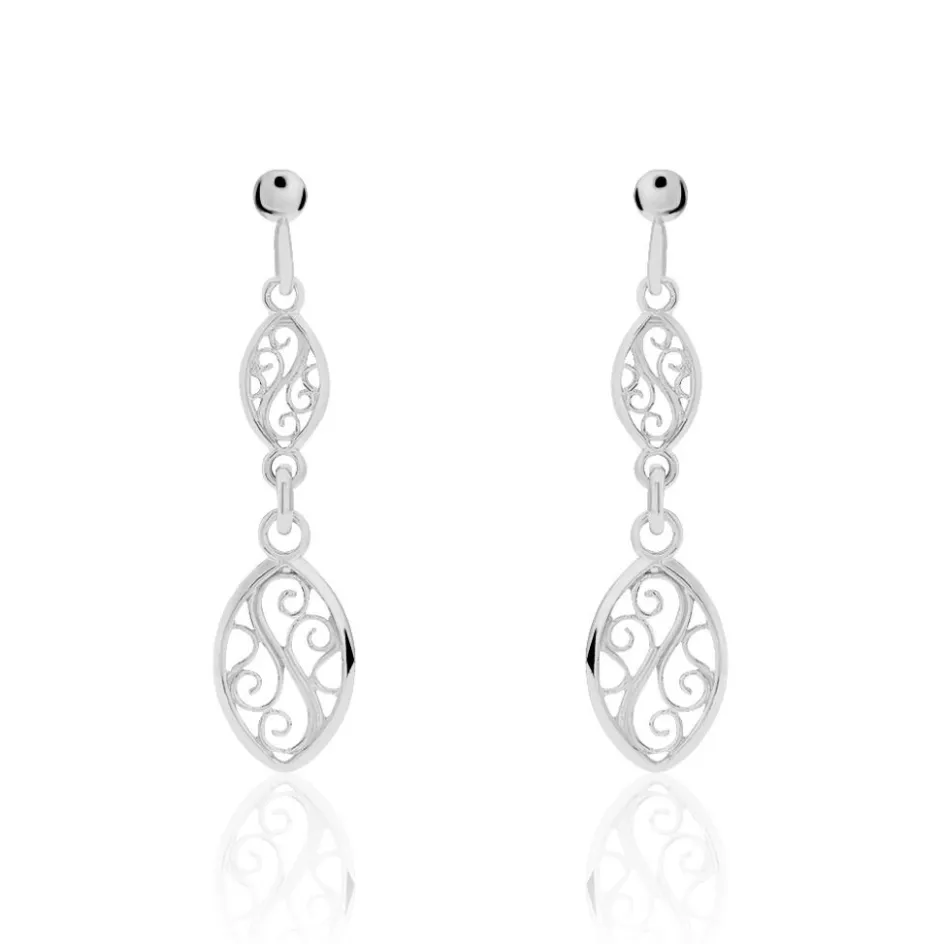 Boucles D’oreilles Pendantes Argent Blanc 925/1000 Filigranes Multiples