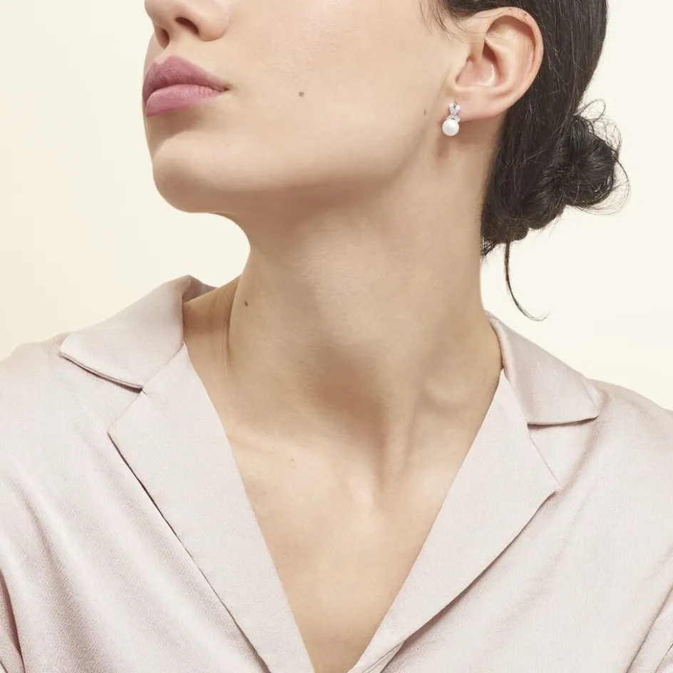 Boucles D’oreilles Argent Blanc 925/1000 Perles De Culture 7-7.5mm Et Oxydes De Zirconium
