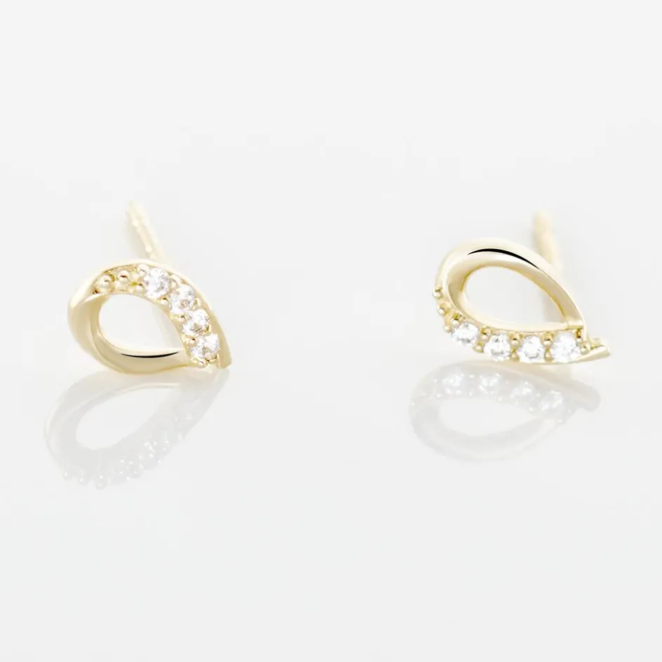Boucles D’oreilles Puces Or Jaune 375/1000 Gouttes Oxydes De Zirconium