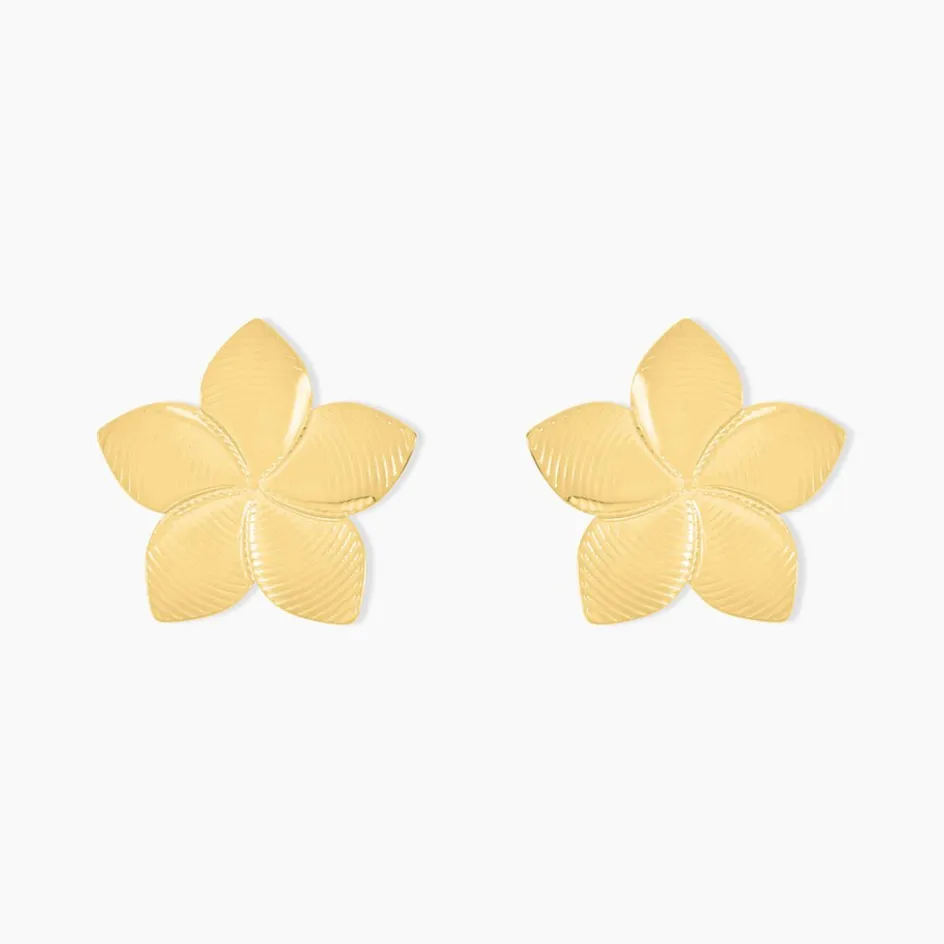 Boucles D’oreilles Puces Acier Jaune Fleur Strié