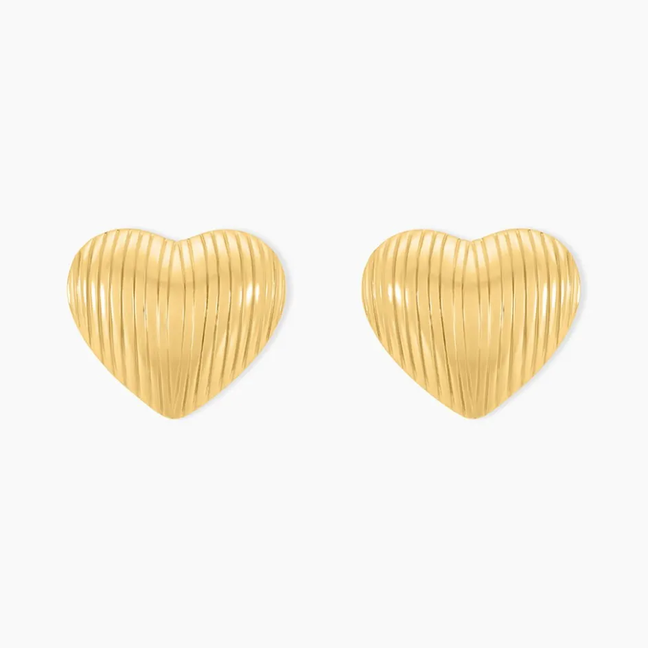Boucles D’oreilles Puces Acier Jaune C艙ur Strié