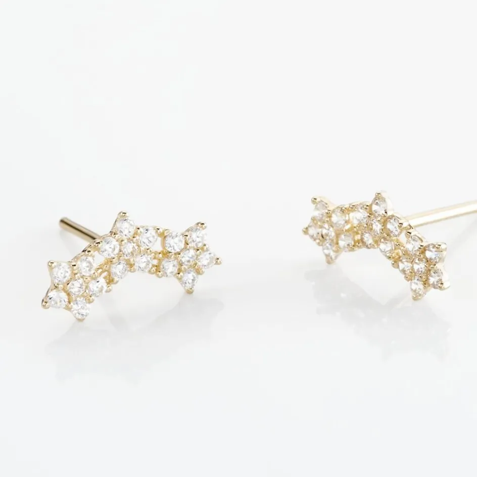 Boucles D’oreilles Puces Or Jaune 375/1000 Barrettes Etoiles Oxydes De Zirconium
