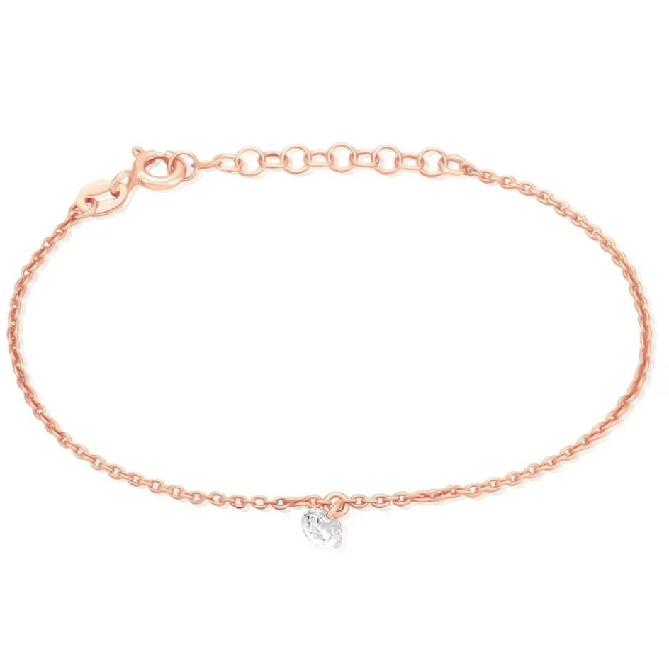 Bracelet Argent Rose 925/1000 Pampille 1 Oxyde De Zirconium Perçée Maille Forçat 19cm
