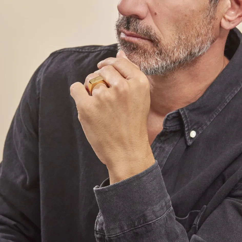 Chevaliere Acier Inoxydable Jaune Plateau Rectangle