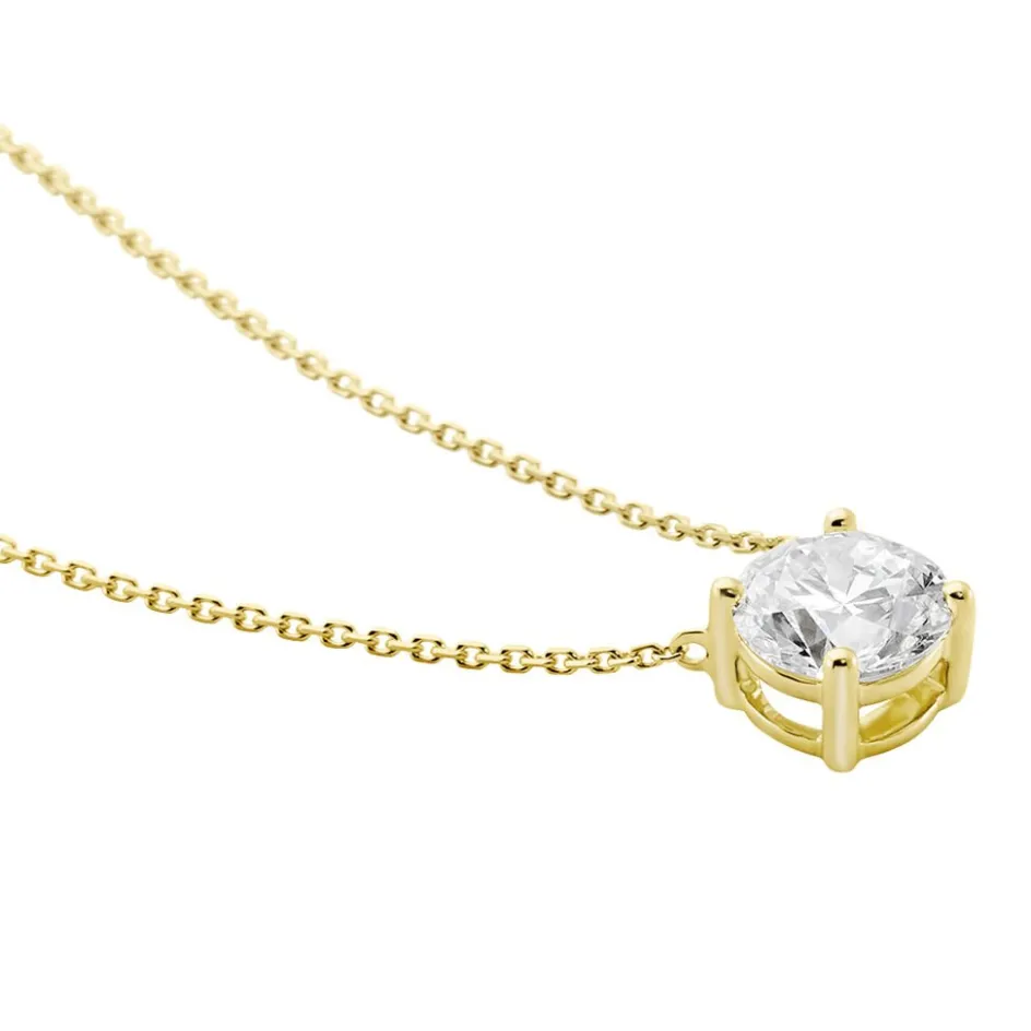 Collier Or Jaune 750/1000 Solitaire Diamant Synthetique 1ct 45cm