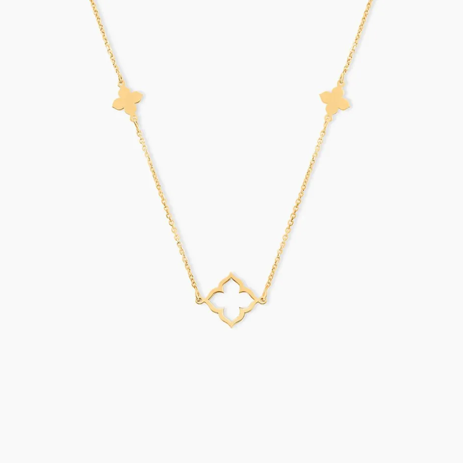 Collier Or Jaune 375/1000 Trefles Maille Jaseron 40+2Cm
