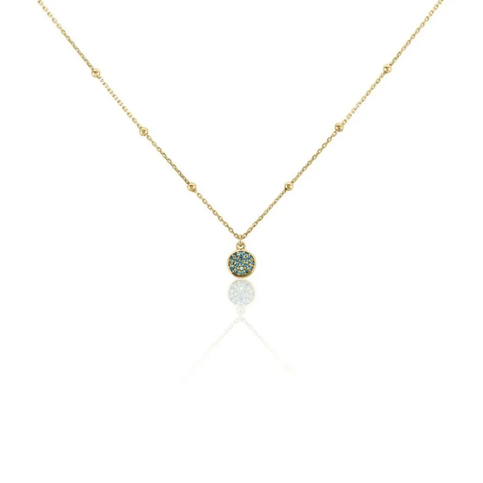 Collier Plaqué Or Jaune Pastille Pavage Oxydes De Zirconium Bleus Maille Boules 45cm