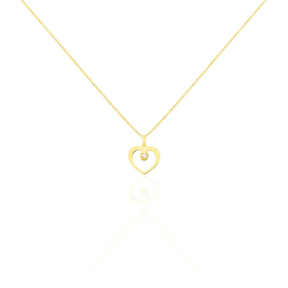 Collier Or Jaune 375/1000 Motif C艙ur Creux Avec Oxyde De Zirconium 42cm