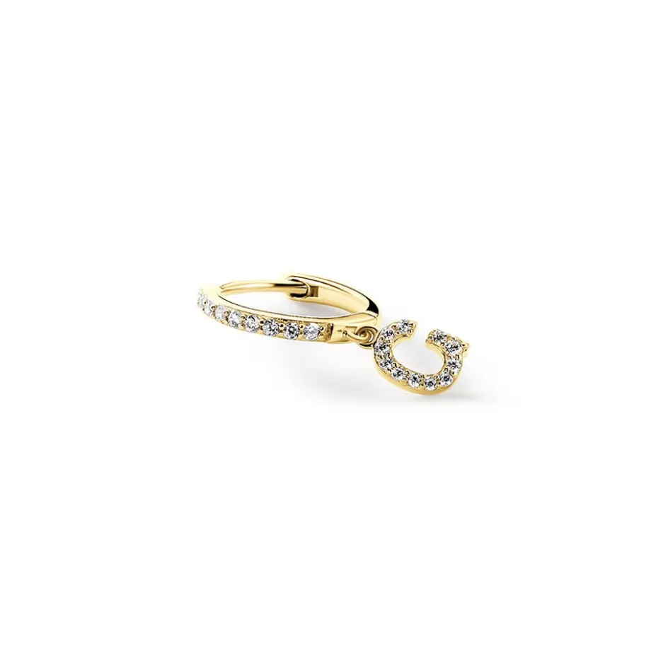 Créole Unitaire G Or Jaune 375/1000 Oxyde De Zirconium Blanc Serti Pavage 8mm