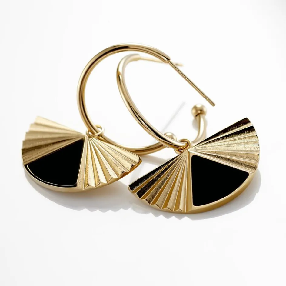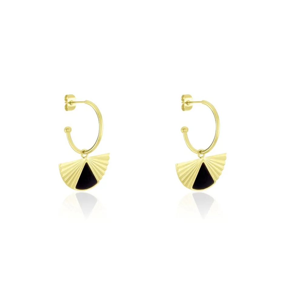 Creoles Acier Dore Demi Soleil Laque Noire Diametre 20mm