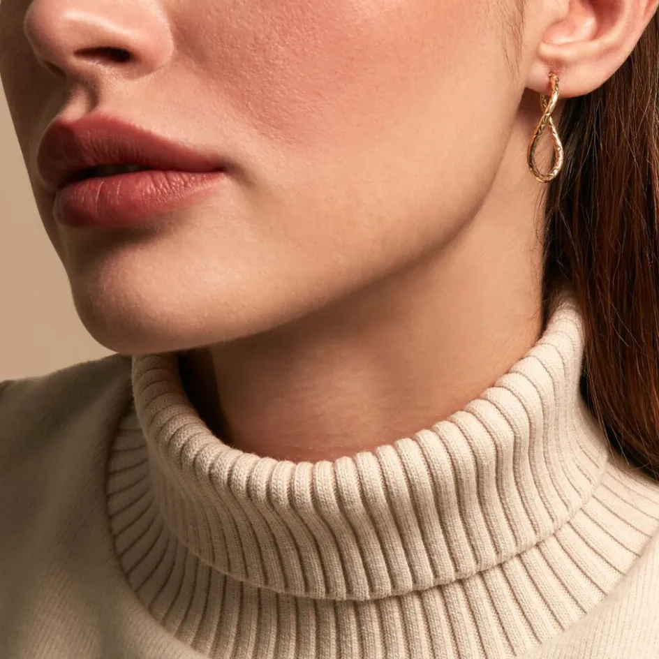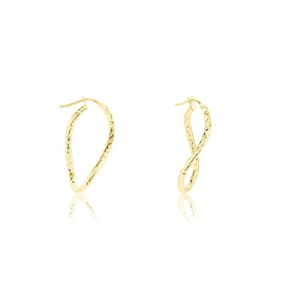 Creoles Or Jaune 375/1000 Ovales Fil Vrille Effet Diamante Largeur 2mm Diametre 30.43mmx17.40mm