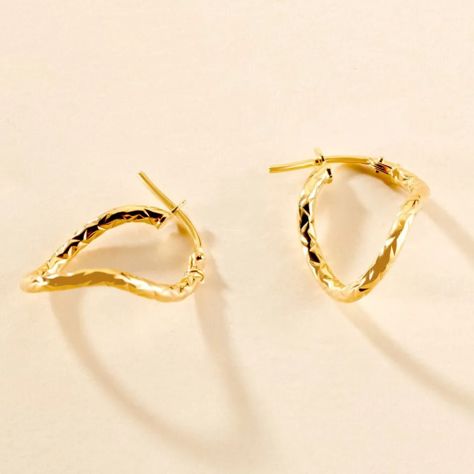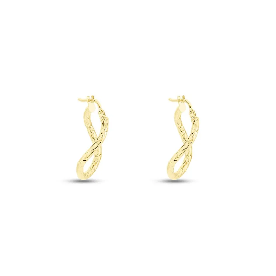 Creoles Or Jaune 375/1000 Ovales Fil Vrille Effet Diamante Largeur 2mm Diametre 22.2mmx15.44mm