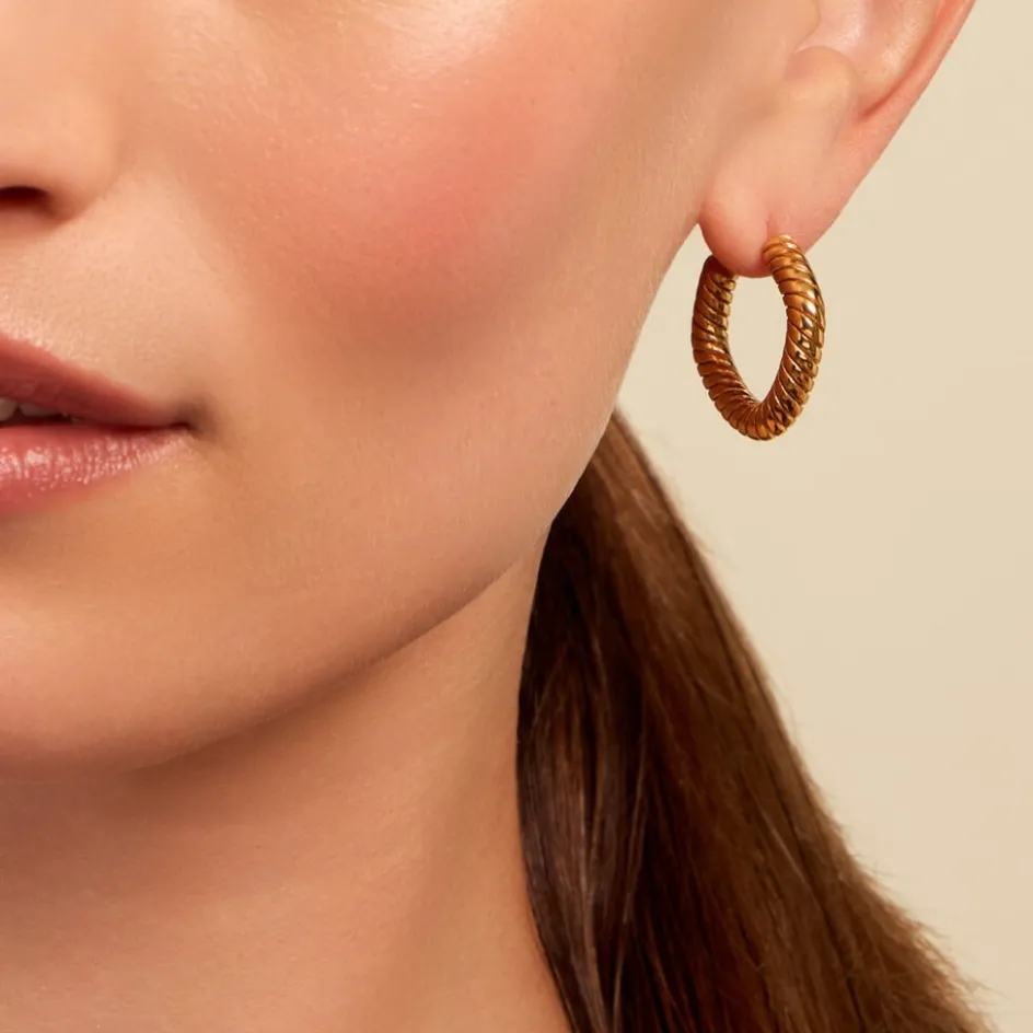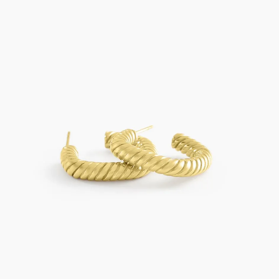Créoles Acier Inoxydable Jaune Formes Amandes Effet Torsadé Diamètre 15mm