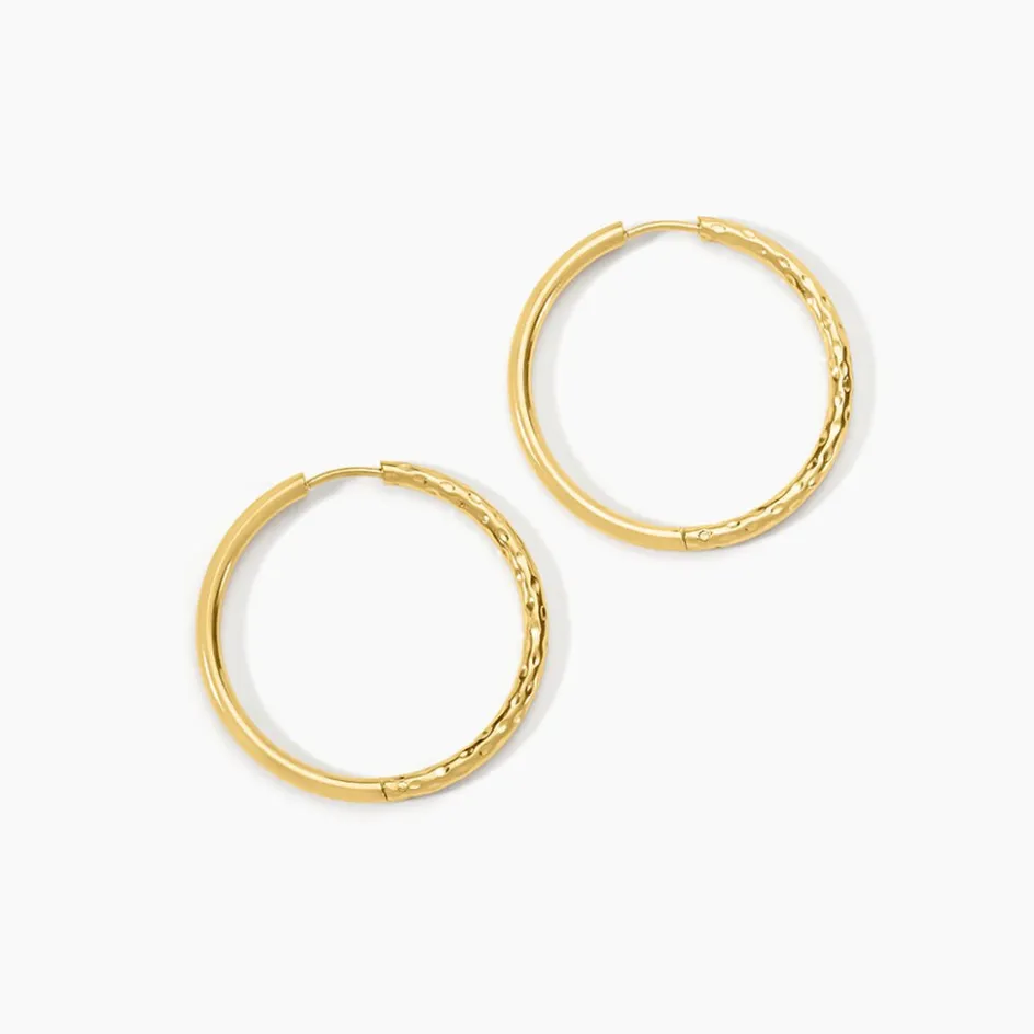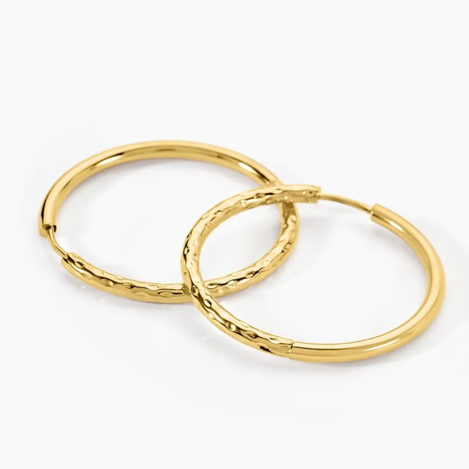 Créoles Acier Inoxydable Jaune Effet Texturé Et Lisse Largeur 2.5mm Diamètre 30mm