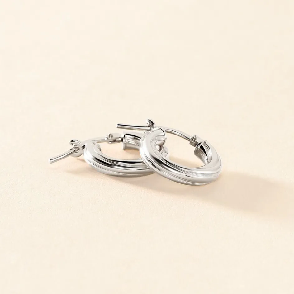 Créoles Argent Blanc 925/1000 Striées Largeur 3mm Diamètre 8mm