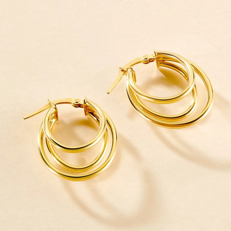 Créoles Or Jaune 375/1000 Ovale Triple Fils Ronds Lisses Longueur 25mm