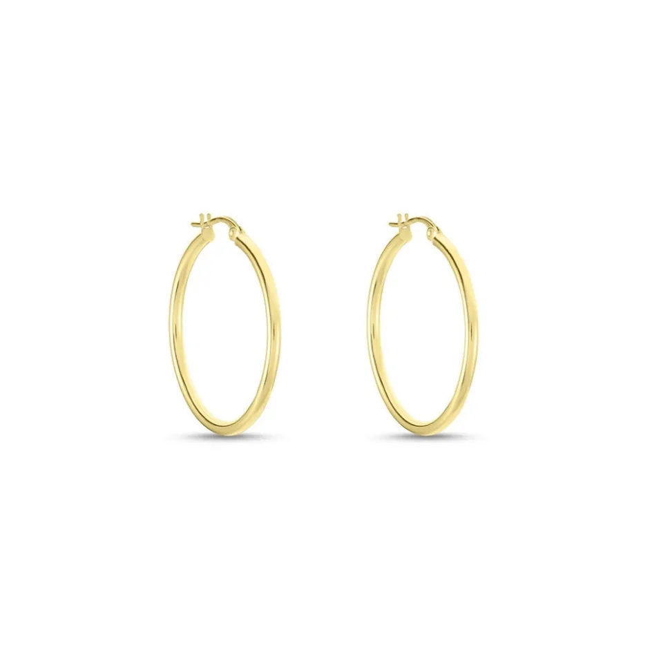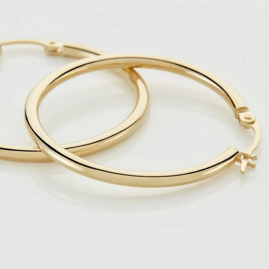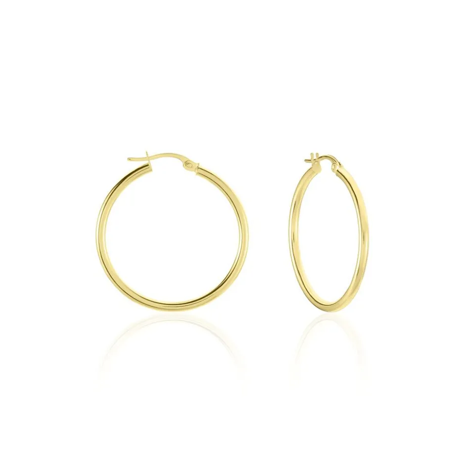 Créoles Or Jaune 375/1000 Fil Rond Lisse Largeur 2mm Diamètre 25mm