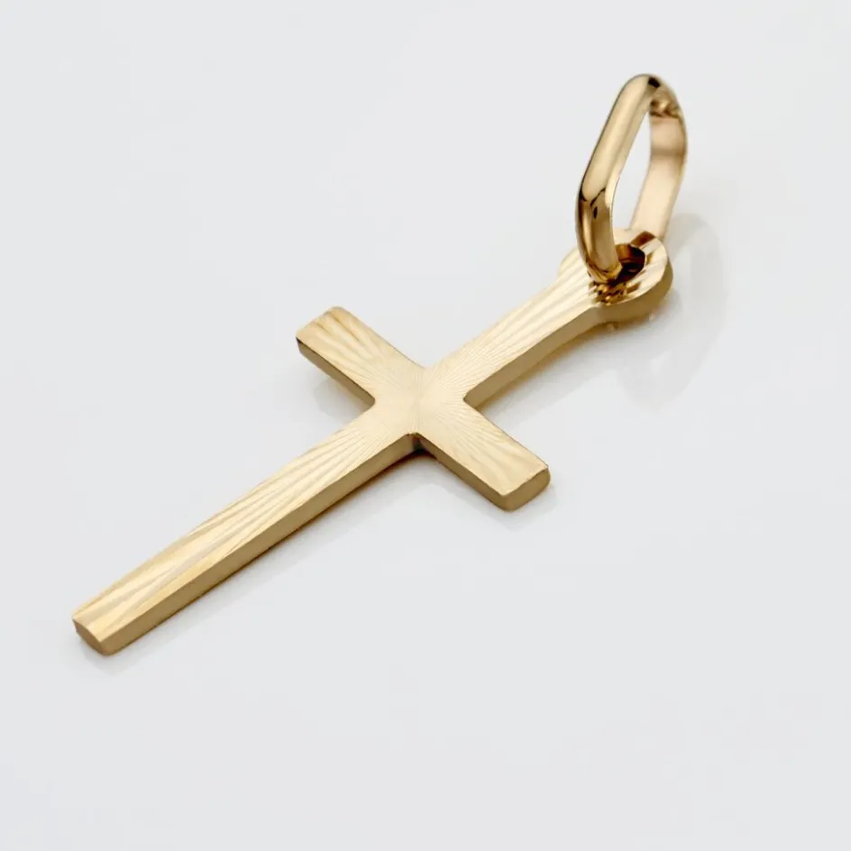 Pendentif Or Jaune 375/1000 Croix Religieuse Striée