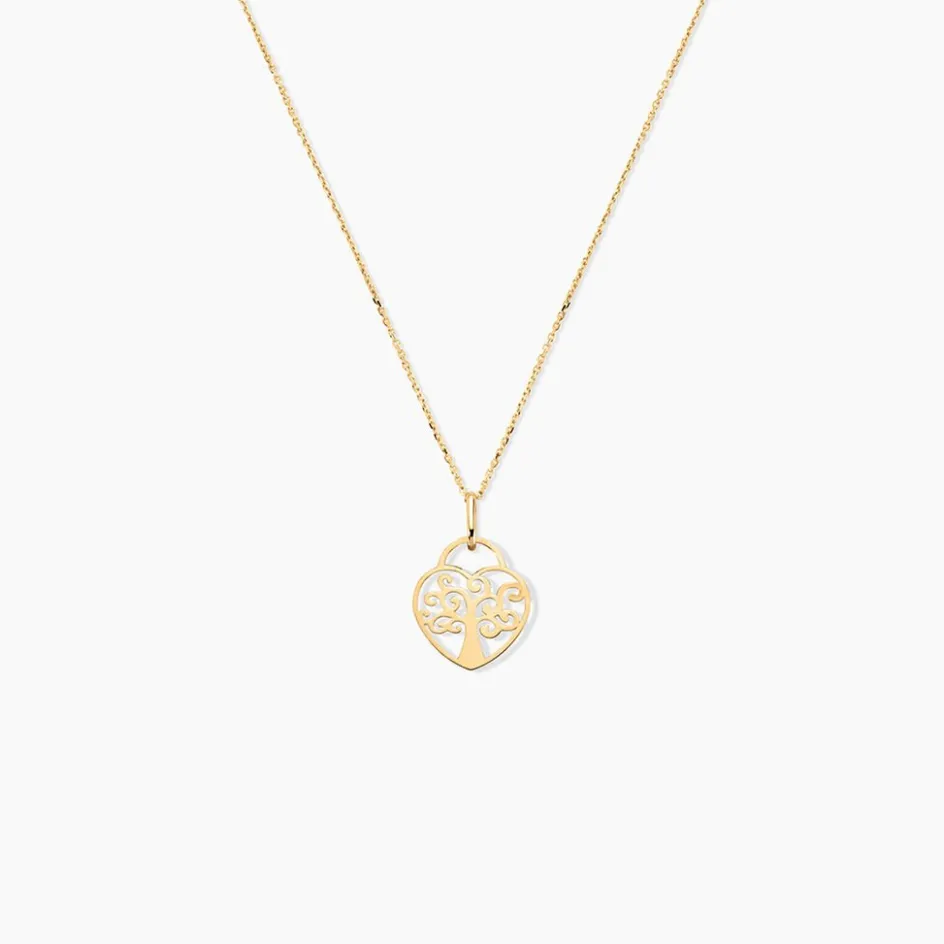Pendentif Or Jaune 375/1000 Arbre De Vie C艙ur Dentelle