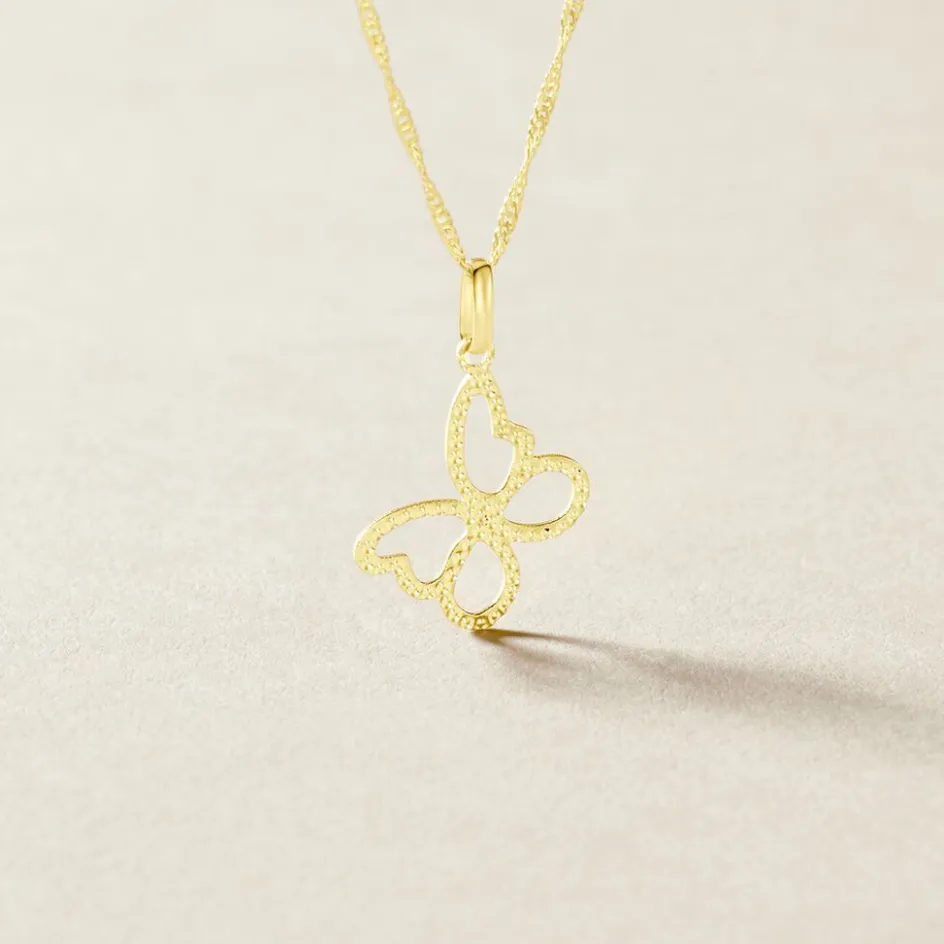 Pendentif Or Jaune 375/1000 Forme Papillon Effet Diamante